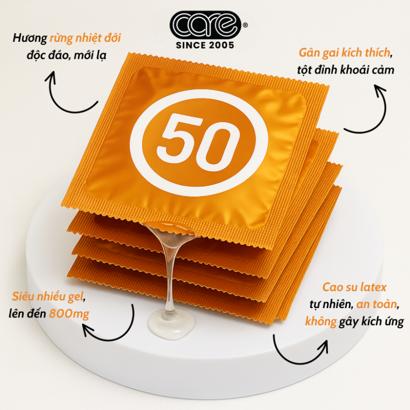 Bao cao su CARE 50 gân gai hương rừng nhiệt đới (hộp 12 bcs)