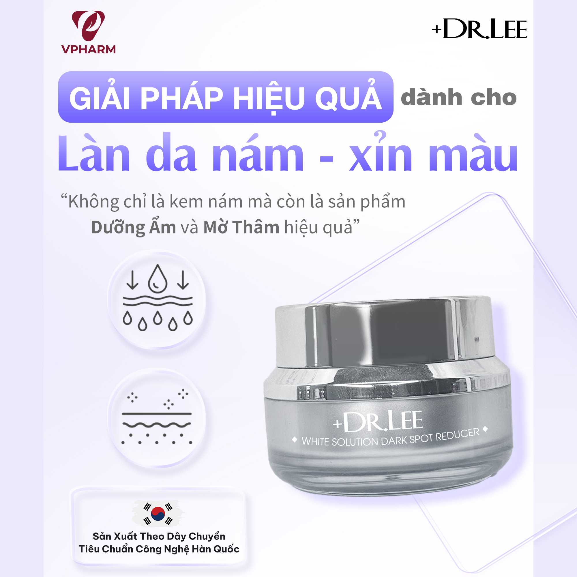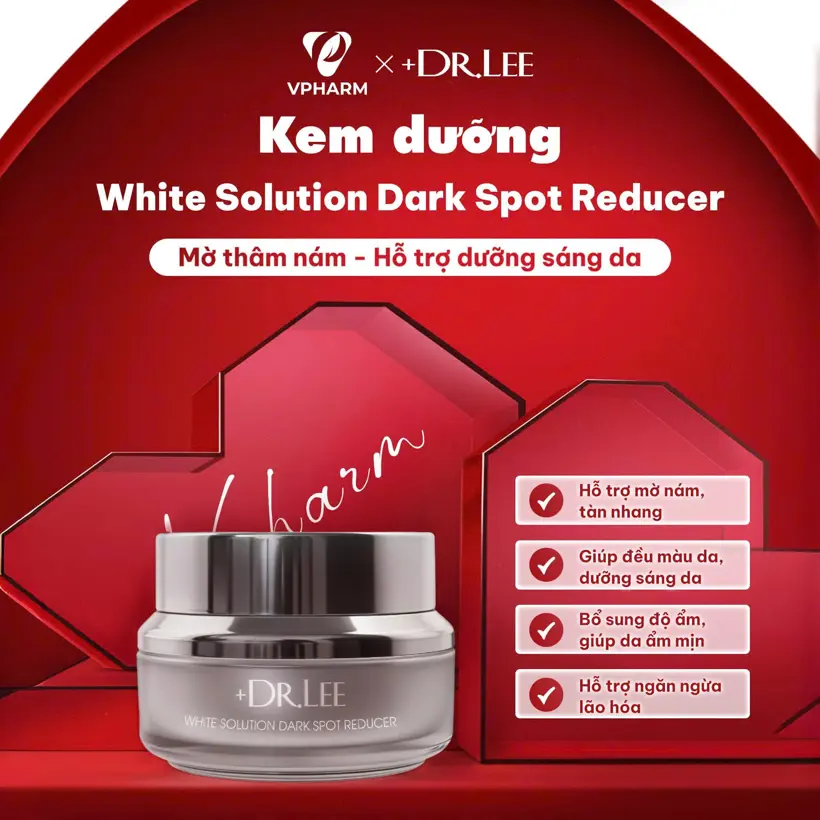 Kem dưỡng sáng da +Dr.lee White Solution Dark Spot Reducer là giải pháp chăm sóc da giúp dưỡng ẩm da, dưỡng trắng và đều màu da, hỗ trợ làm mờ các vết thâm nám, tàn nhang, đồng thời giúp ngăn ngừa lão hóa da.