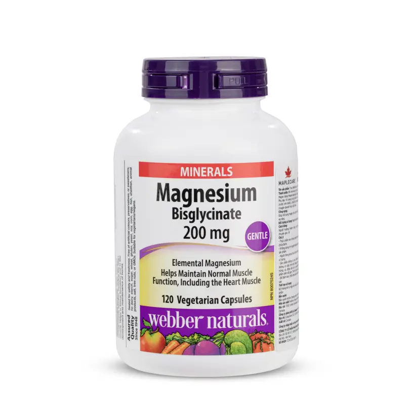 Magnesium Bisglycinate từ Webber Naturals là một dạng magiê dễ hấp thụ hơn, làm dịu và nhẹ nhàng trên hệ tiêu hóa, nó không đòi hỏi axit dạ dày để được hấp thụ. Magiê giúp duy trì chức năng cơ bắp thích hợp, bao gồm cả tim, và hỗ trợ xương và răng khỏe mạnh, hình thành mô và chuyển hóa chất dinh dưỡng.