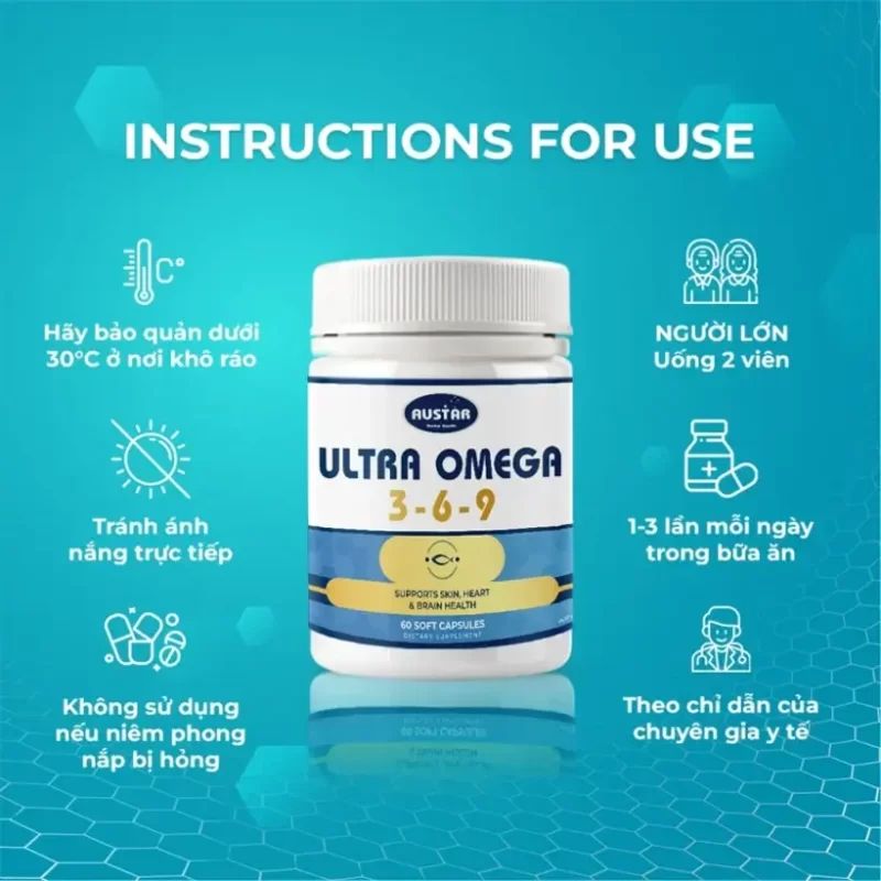 Viên uống AUSTAR Ultra Omega 3-6-9 có thể bổ sung axit béo omega mà cơ thể cần, nhưng không thể thay thế hoàn toàn thực phẩm từ cá. Vì vậy, tốt nhất bạn nên sử dụng cùng với chế độ ăn uống cân bằng để mang lại hiệu quả tối ưu.