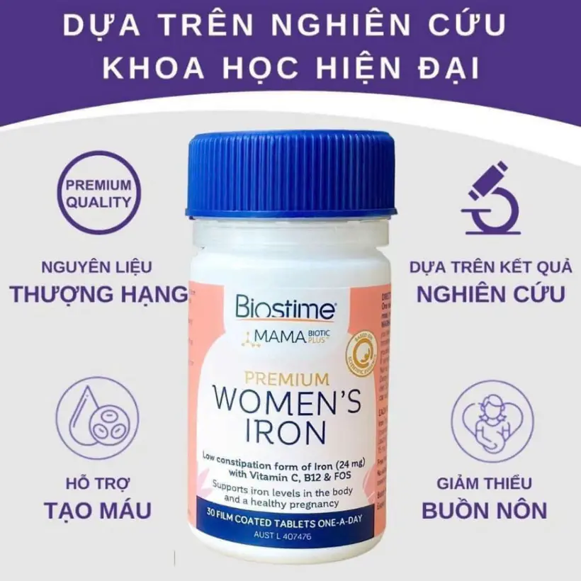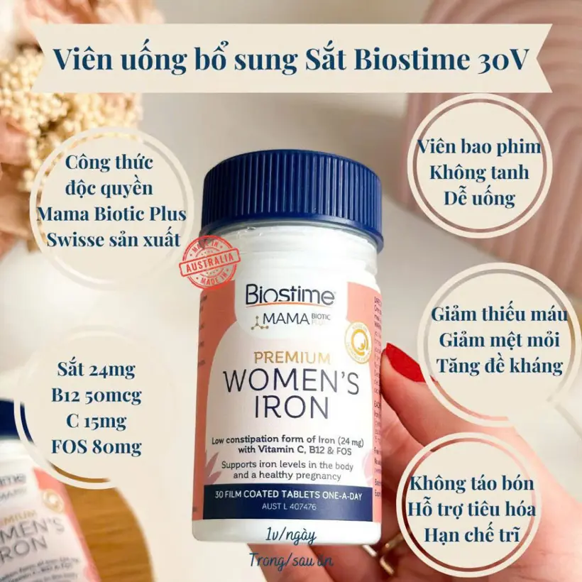 Viên uống bổ sung sắt hữu cơ Biostime Úc 30v , độc quyền MAMA Biotic Plus