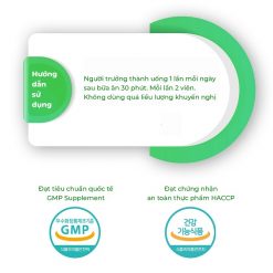 – Được kiểm nghiệm lâm sàng đạt tiêu chuẩn quốc tế GMP Supplement.
