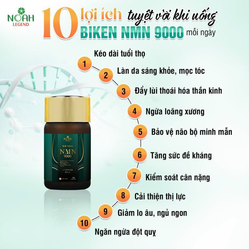 BIKEN NMN 9000 Nhật bản. Hỗ trợ tăng cường sức khoẻ, hỗ trợ hạn chế lão hoá da.